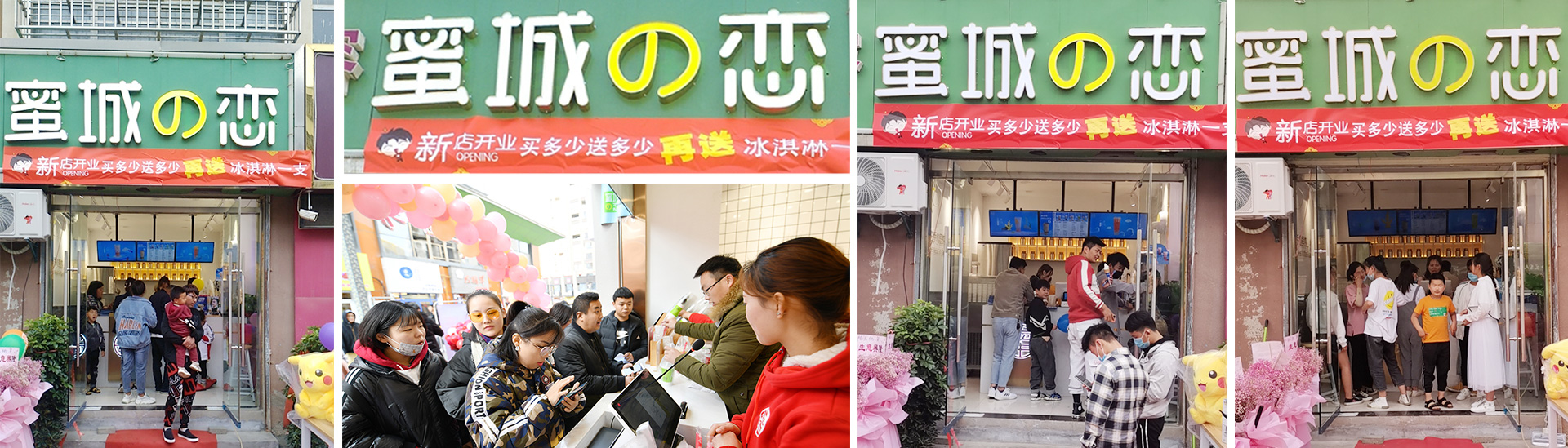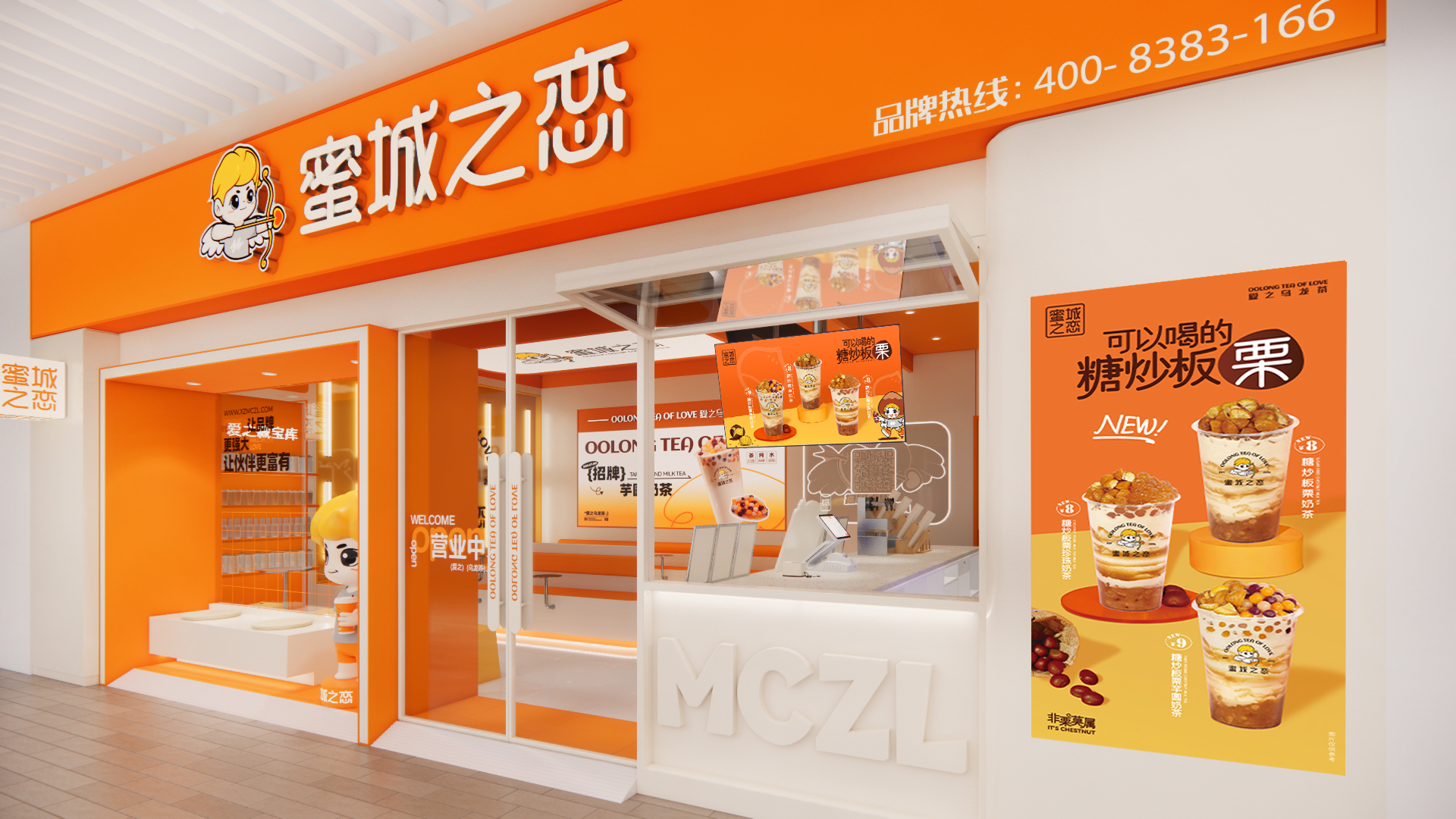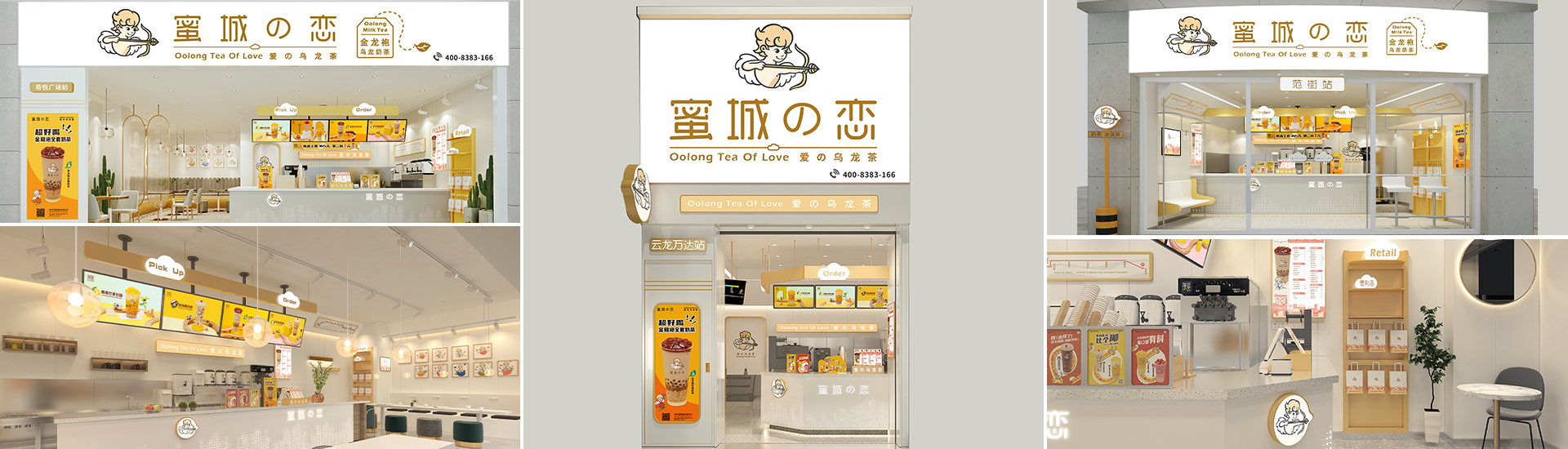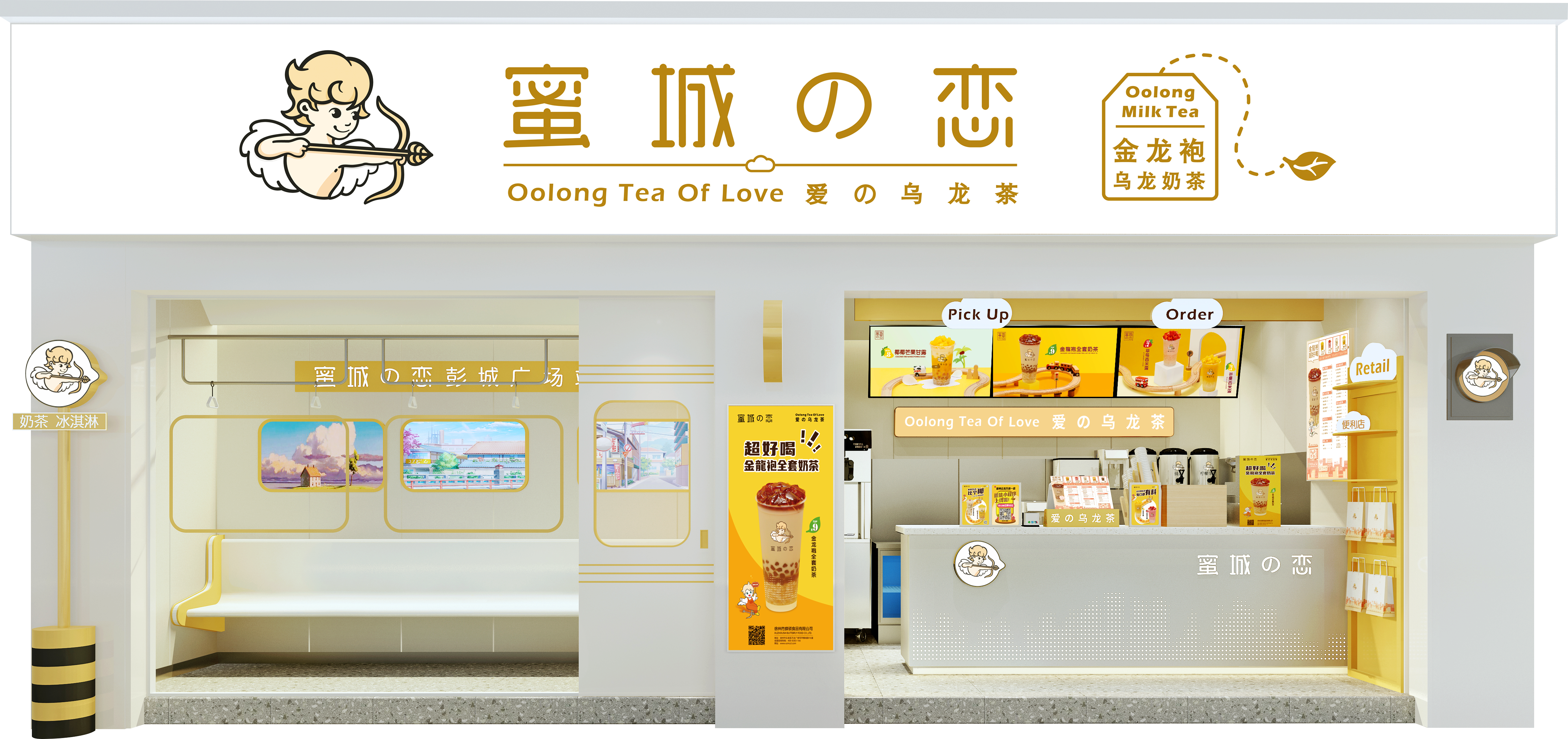 將蜜城之戀的主打產(chǎn)品金龍袍全套奶茶展示在外部燈箱上,在最顯眼的位置呈現(xiàn)蜜城之戀的這款具有品牌記憶點(diǎn)的產(chǎn)品